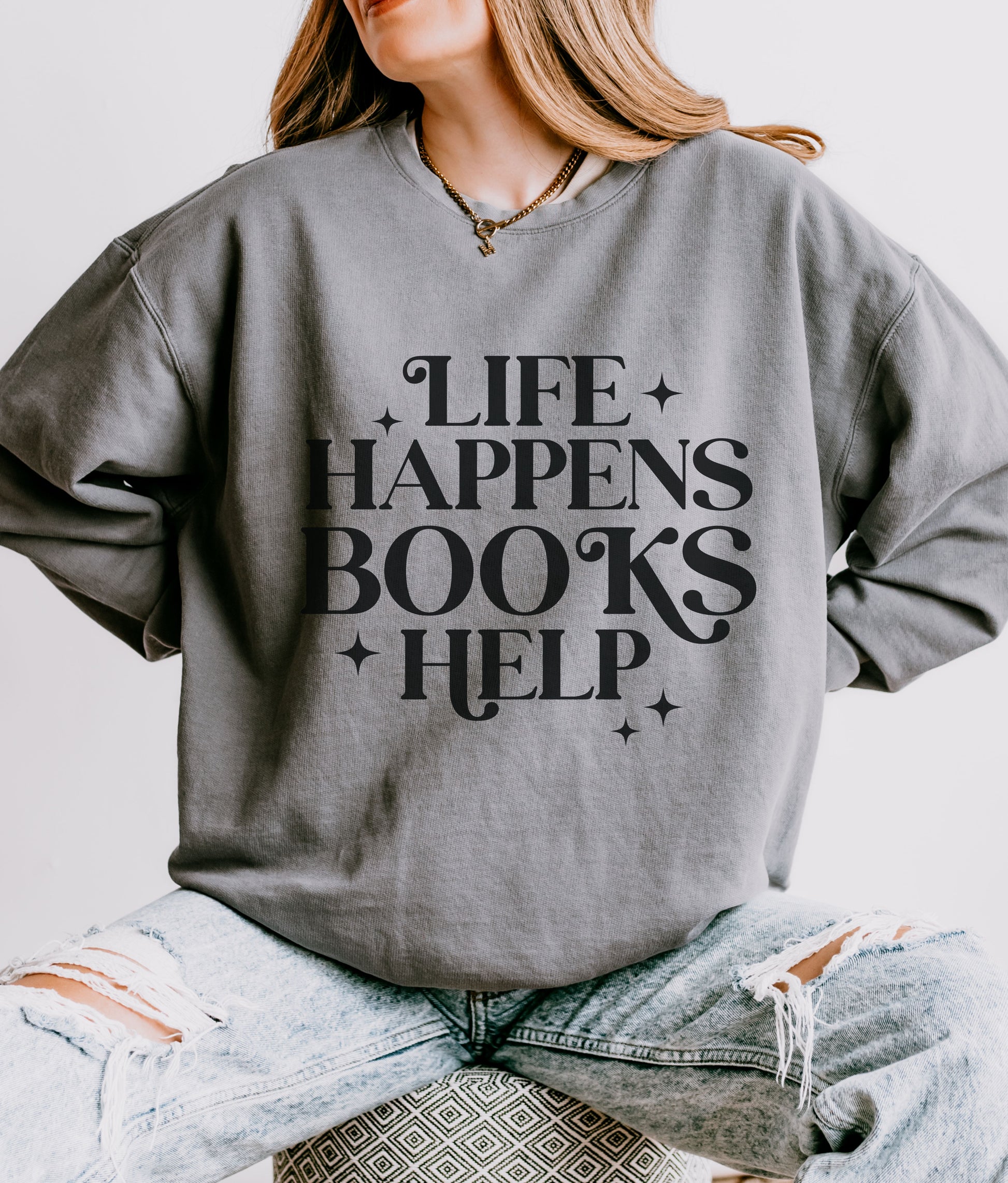 Life Happens Books Help Sweater Book Sweatshirt Reading Crewneck Oversized Book Shirt Gifts for Book Reader