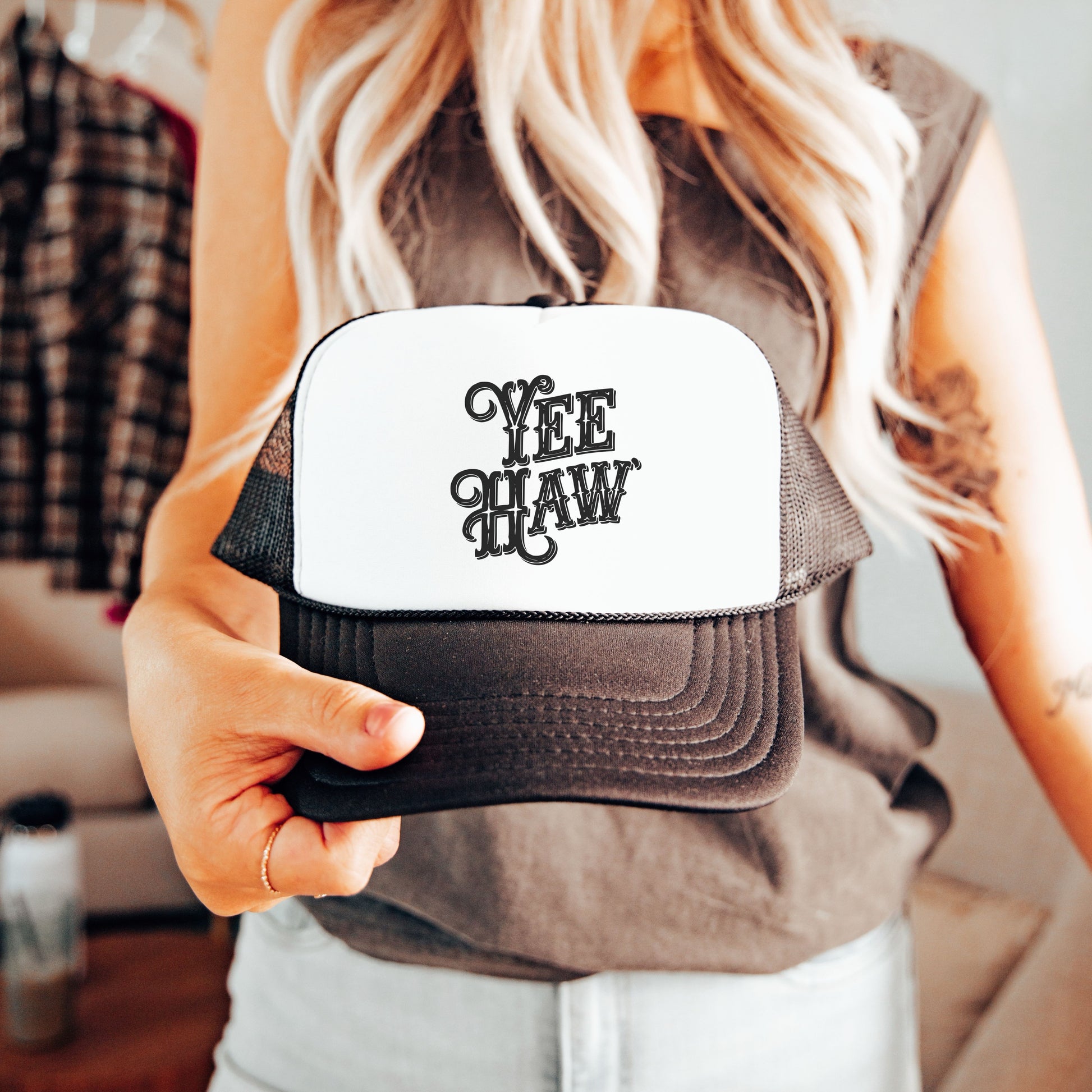 Looking for your next gifting idea? We have you covered! Get ready to wrangle with our Yee Haw Trucker Hat!